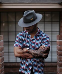 This striking, stylish fedora is made of 100% firm wool felt. It features a 4 1/2″ teardrop crown and a 3″ bound-edge flat brim.