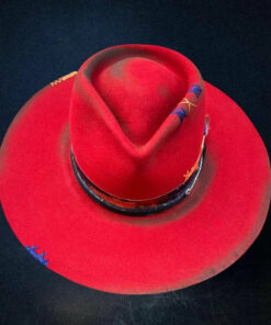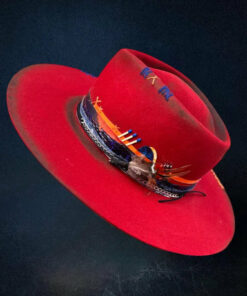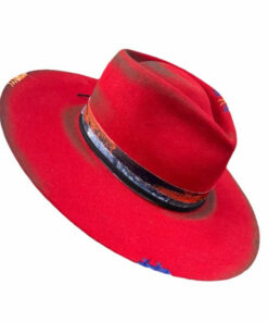 Distressed Fedora with Red Multi-color Patchwork Design