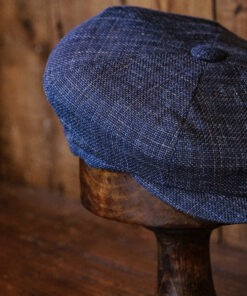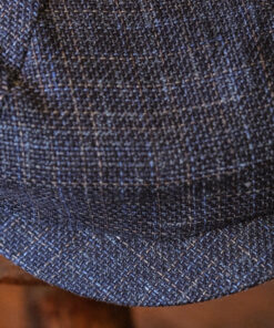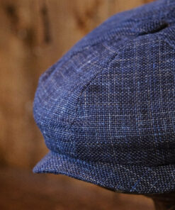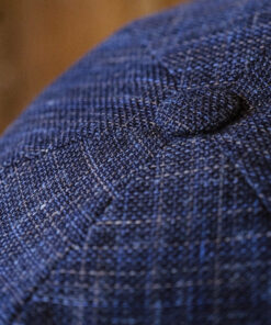 The “Eight Piece Navy Hopsack Linen Newsboy Cap”. Made from high-quality linen material, this cap features a unique eight-panel design that gives it a stylish and sophisticated look. Whether you’re dressing up for a special occasion or simply looking to elevate your everyday outfits, this newsboy cap is the perfect accessory. With its comfortable fit and timeless charm, it’s sure to become a staple in your collection.