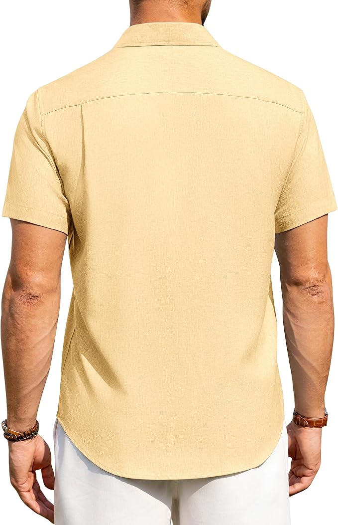 - Fabric: Mens Casual Button Down shirt is made of high quality cotton linen fabric. Feature with Breathable, Lightweight, Skin-friendly, which can resistant shrink, provide you feeling cool and comfotable all day