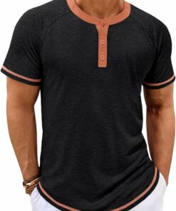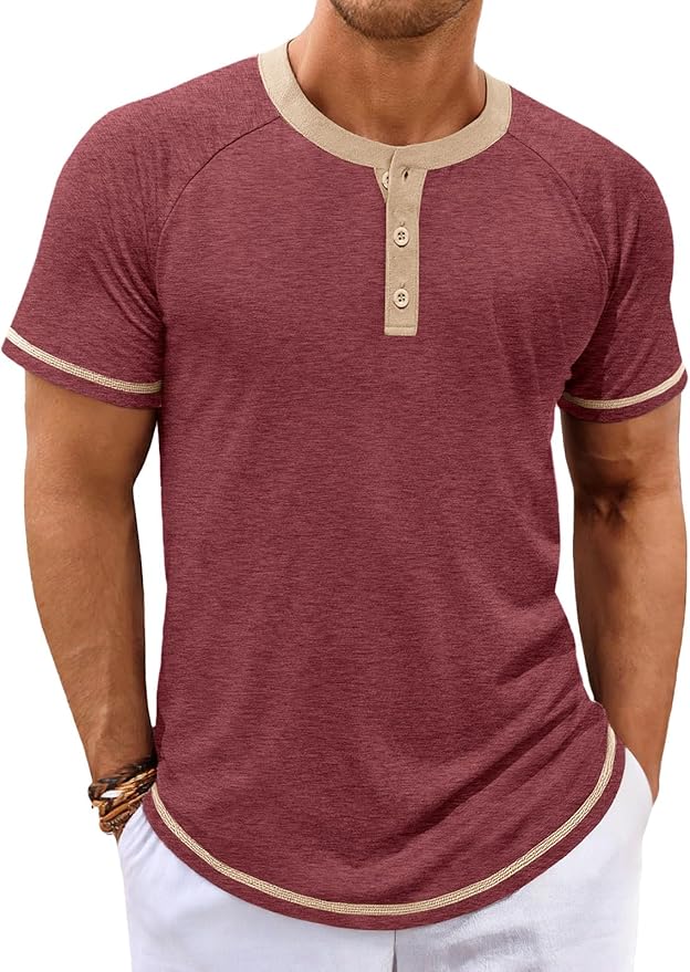 - Stylish Design: Casual henley t shirts for men, it features short sleevel, 3 Buttons, slim fit, the design of contrasting neckline and henmline adds a unique touch to this basic henley shirt