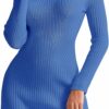 - FEATURES- Heavyweight ribbed bodycon dress, long sleeve with split cuff, knit bodycon mini dress, no closure pullover design, slimming dresses for curvy women, mock neck. This a line sweater dress offers elegance in this season